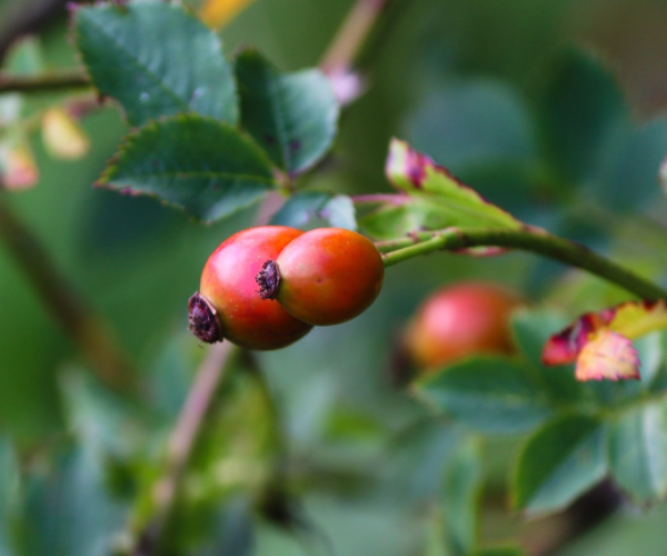 Ses baies, rondes et allongées sont rouges ou roses.