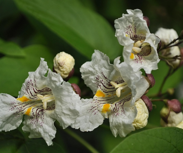 Originaire de Chine, il peut mesurer jusqu’à 15 m de haut. Arbre rustique, ses grandes feuilles peuvent atteindre jusque 30 cm de long. En forme de cœur, elles donnent au catalpa une image exotique.